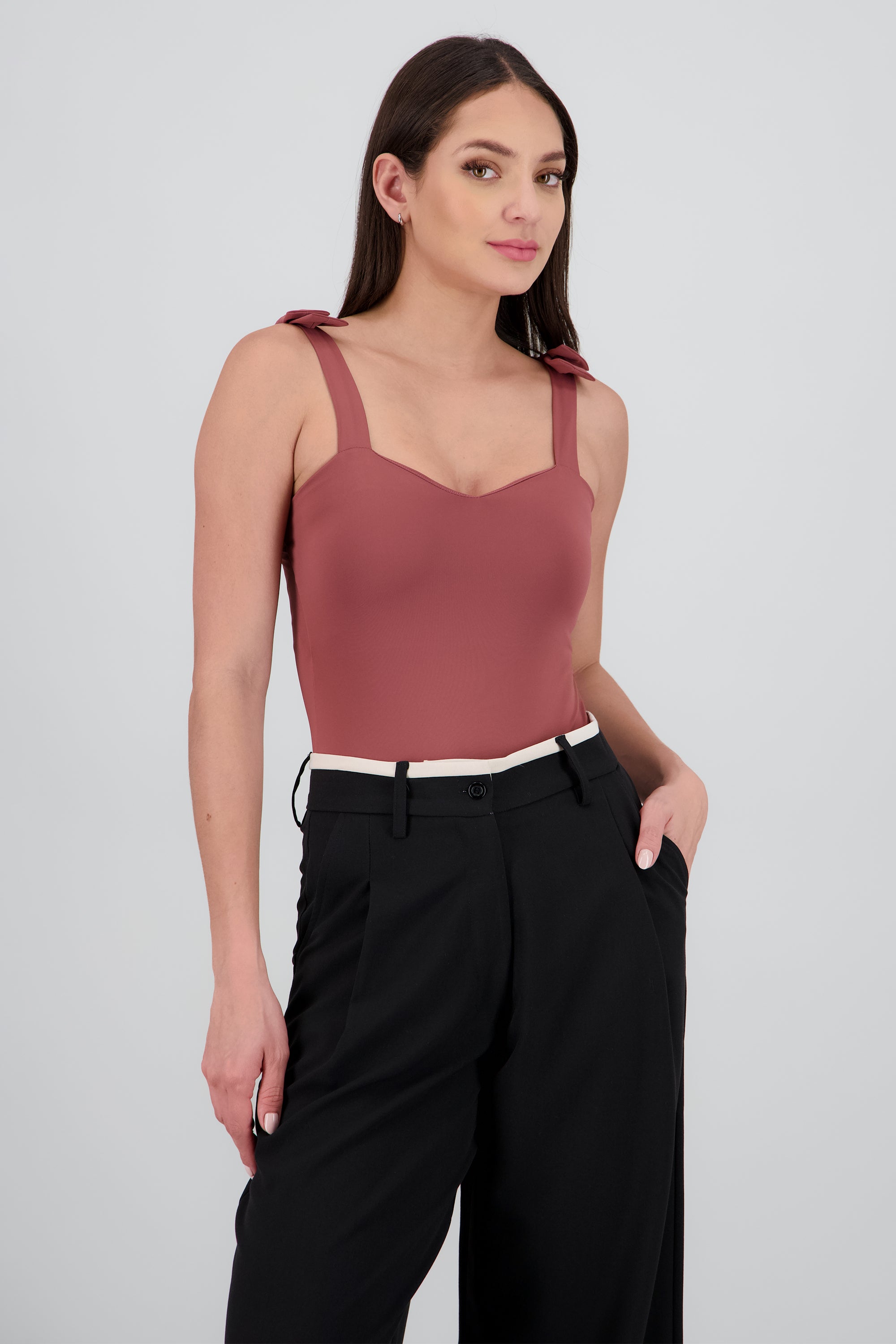Bodysuit liso con tirante moños