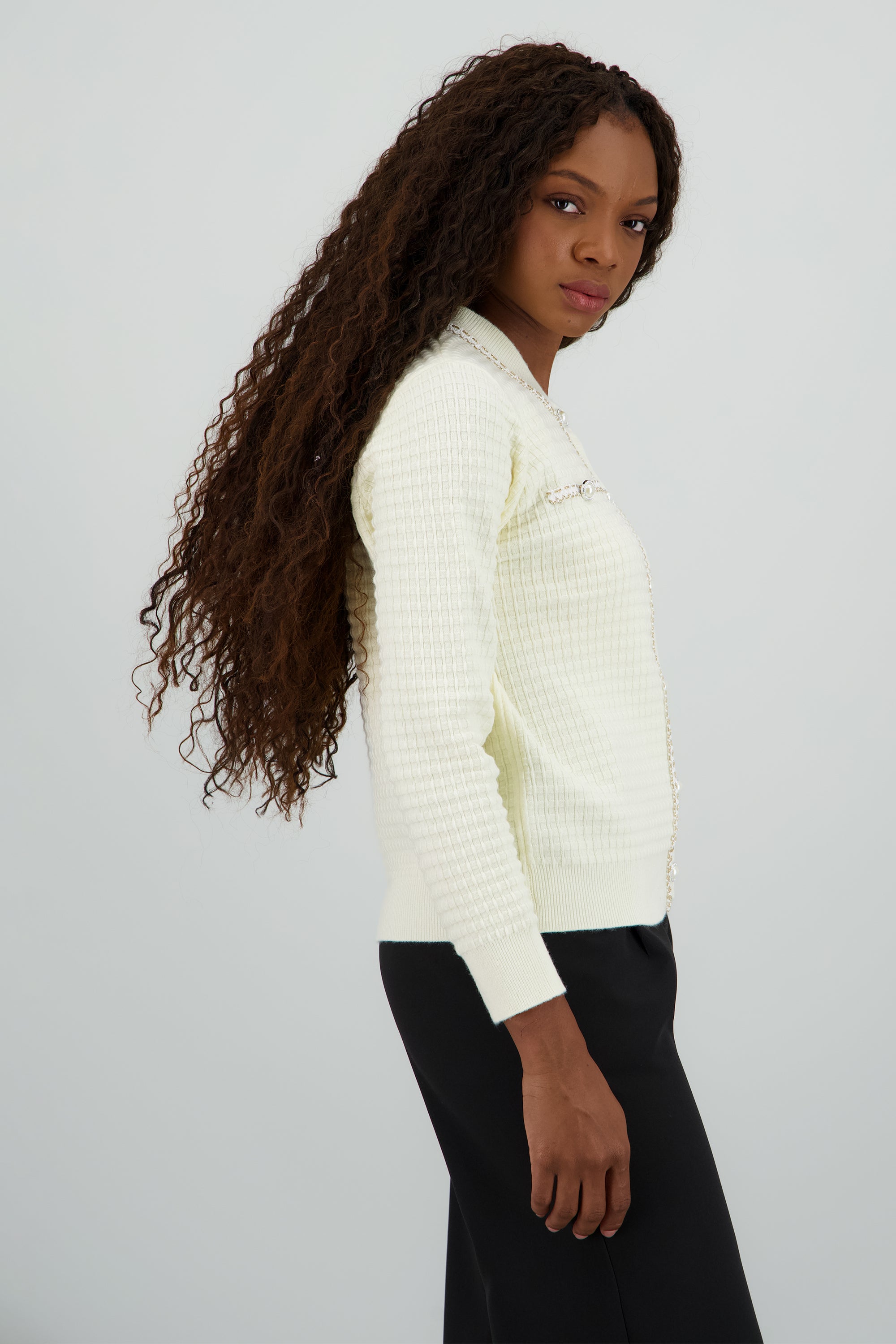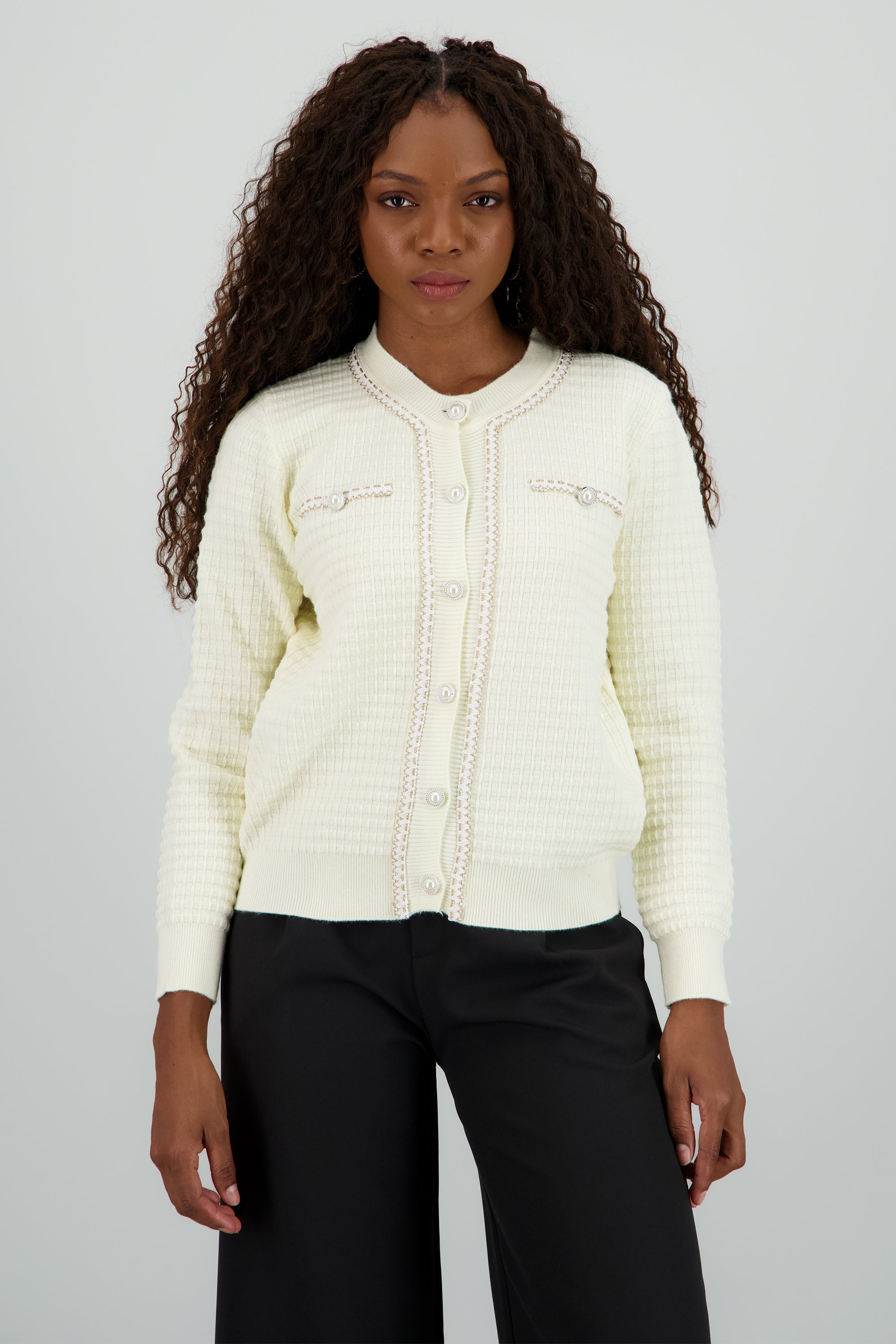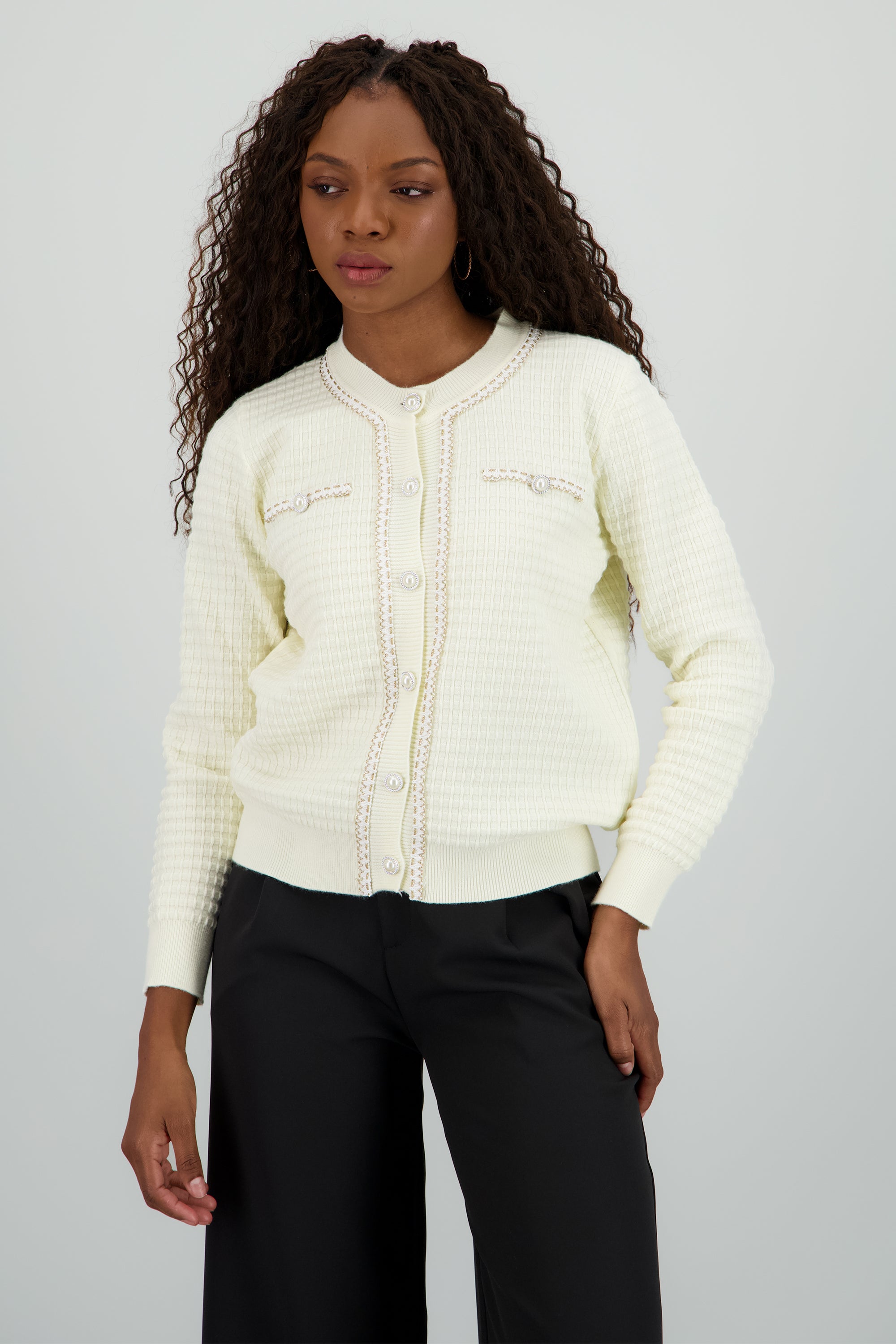Cardigan detalle boton perla