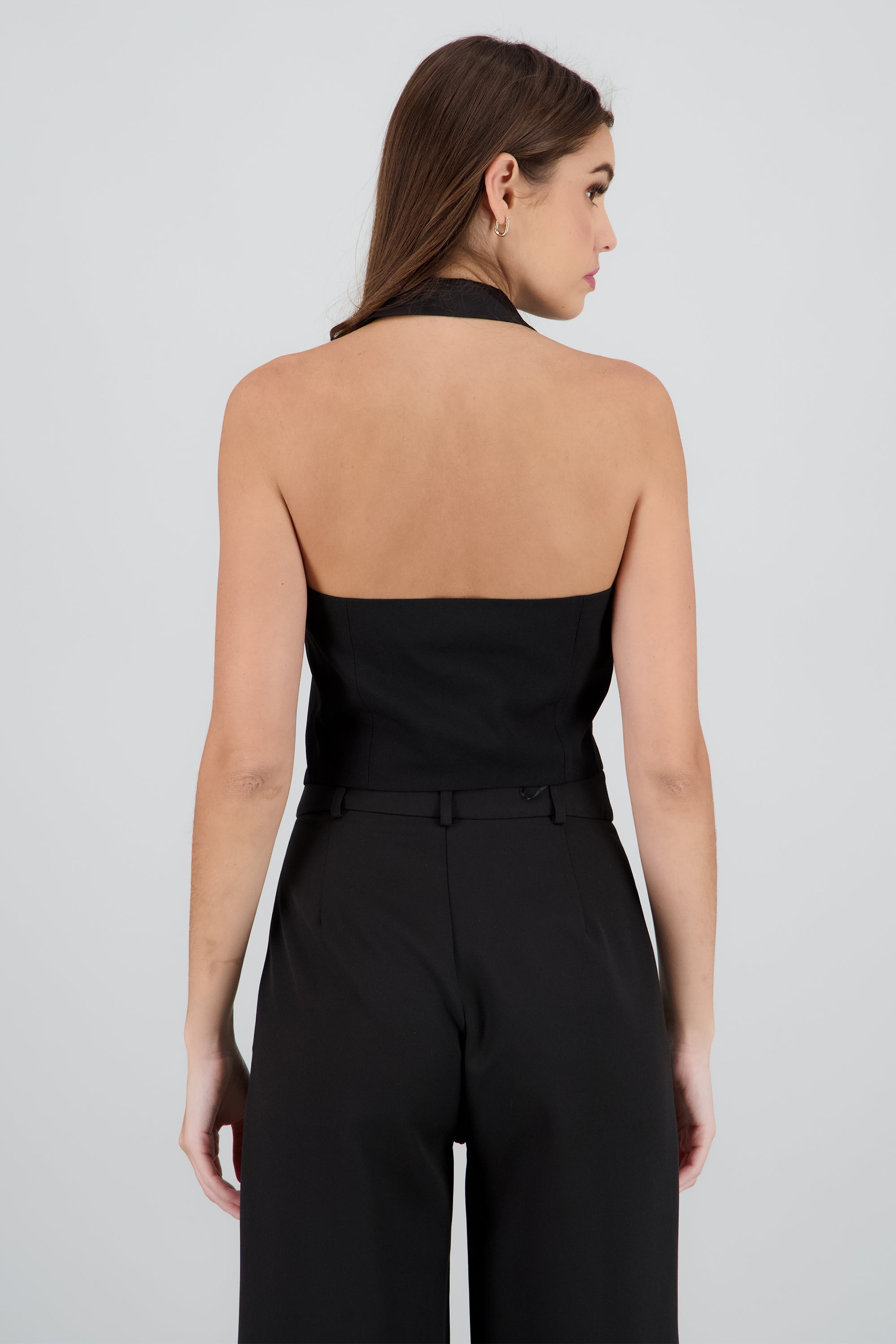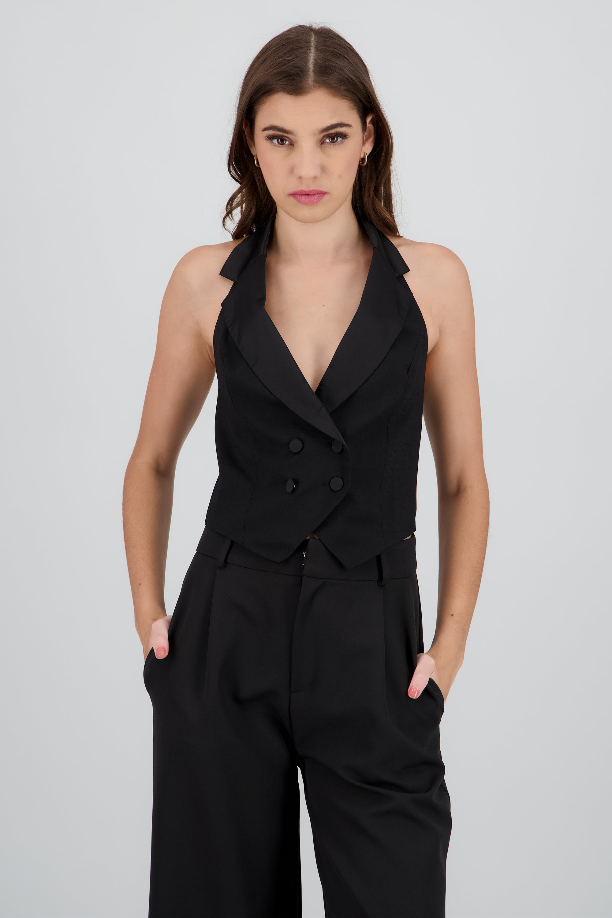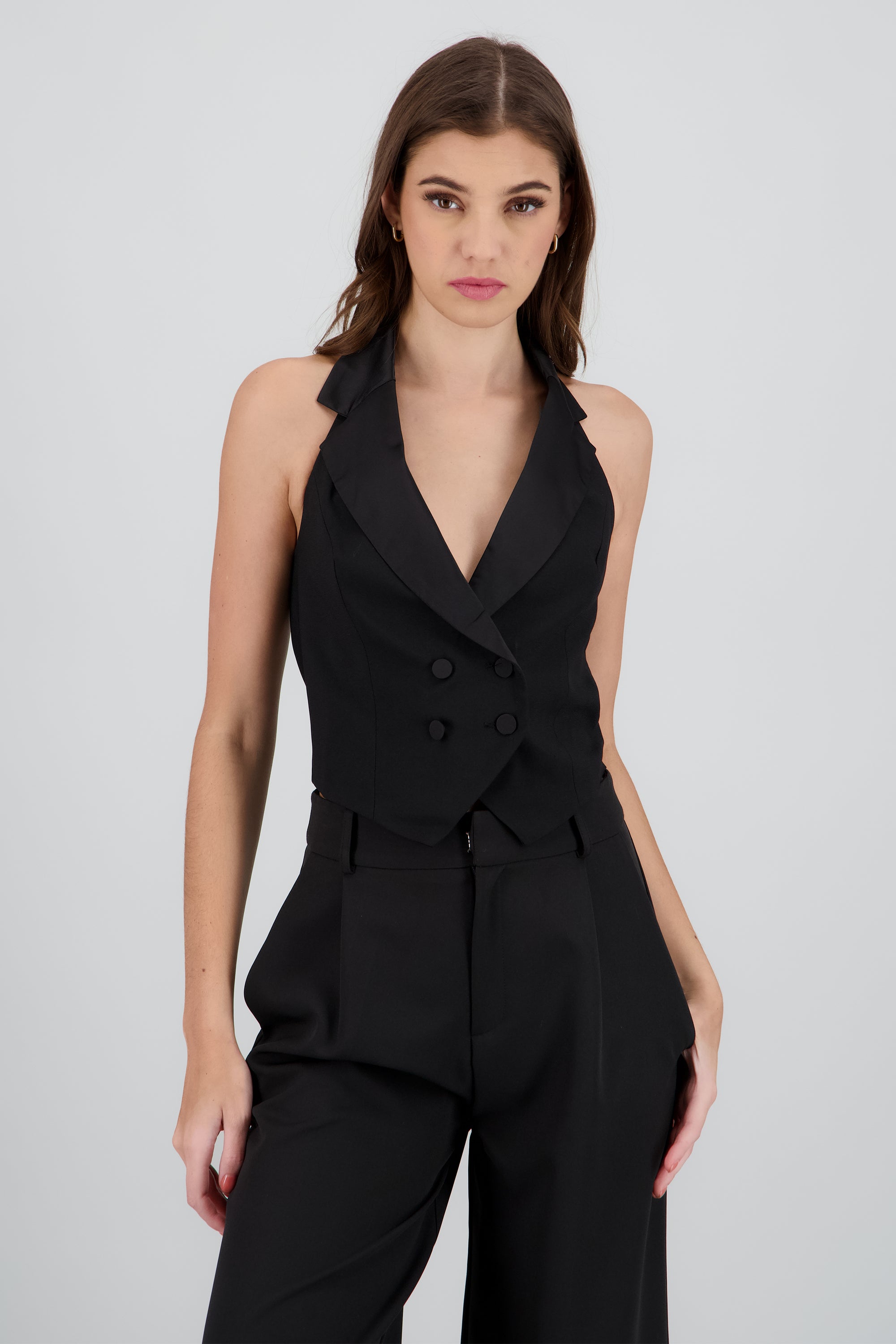 chaleco corte regular, con halter detalle satin, cierre estándar.