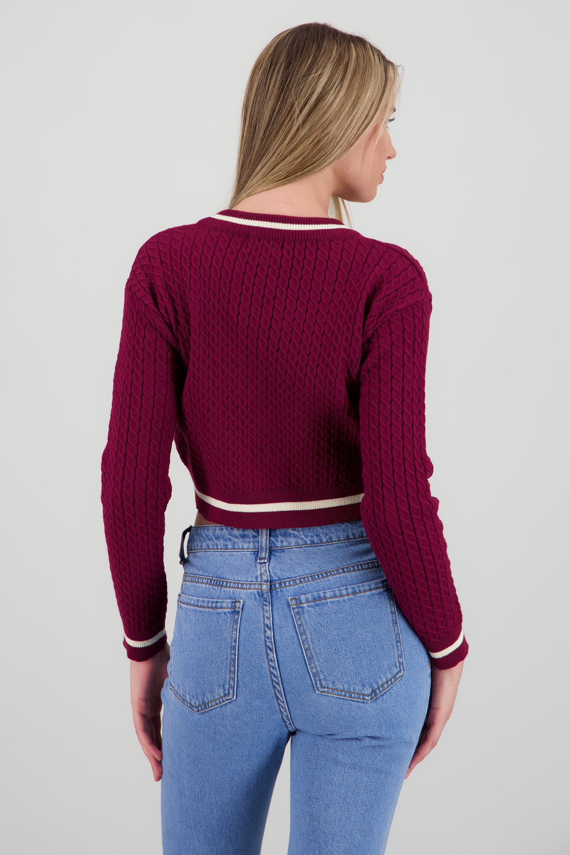 Sueter cardigan con contraste