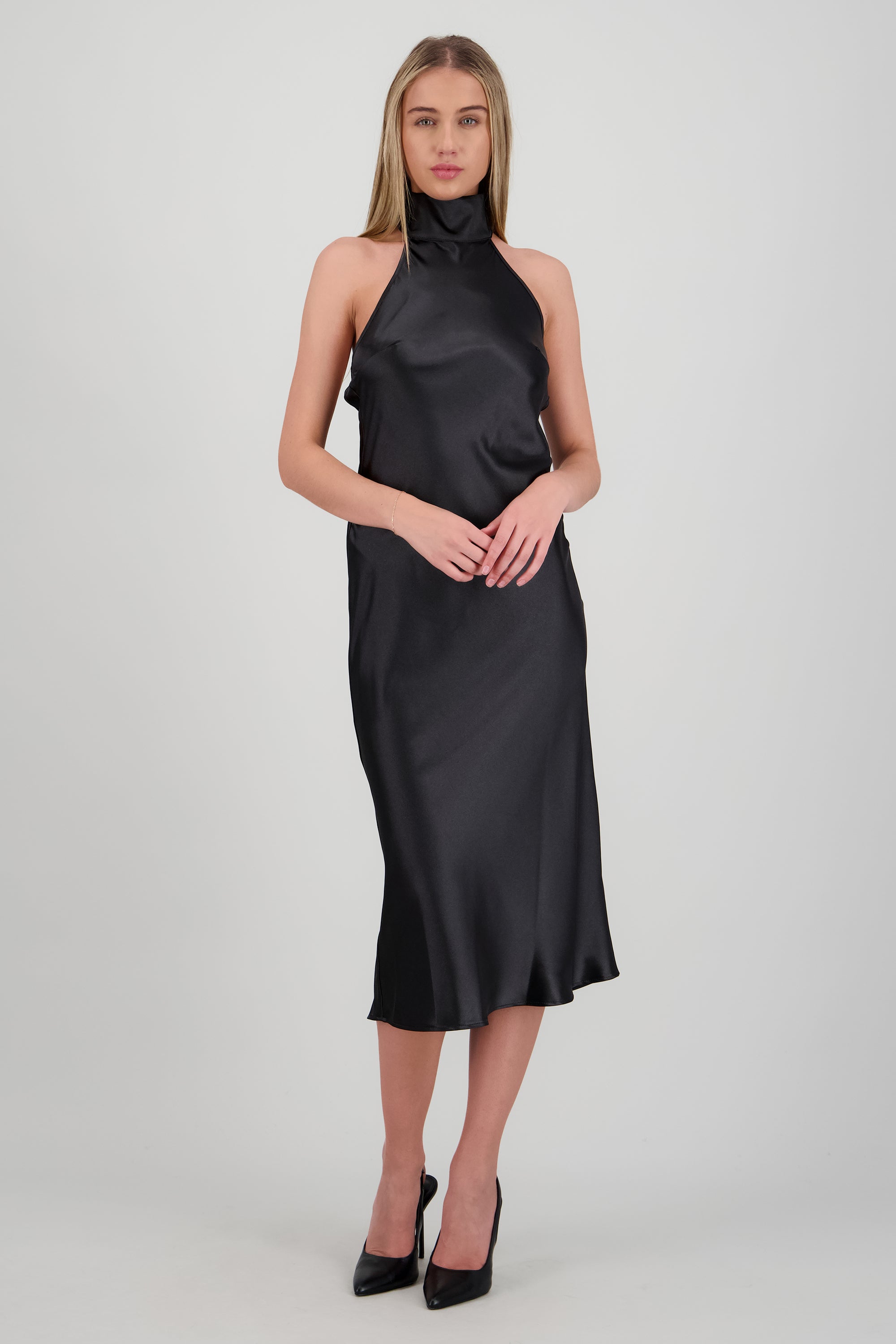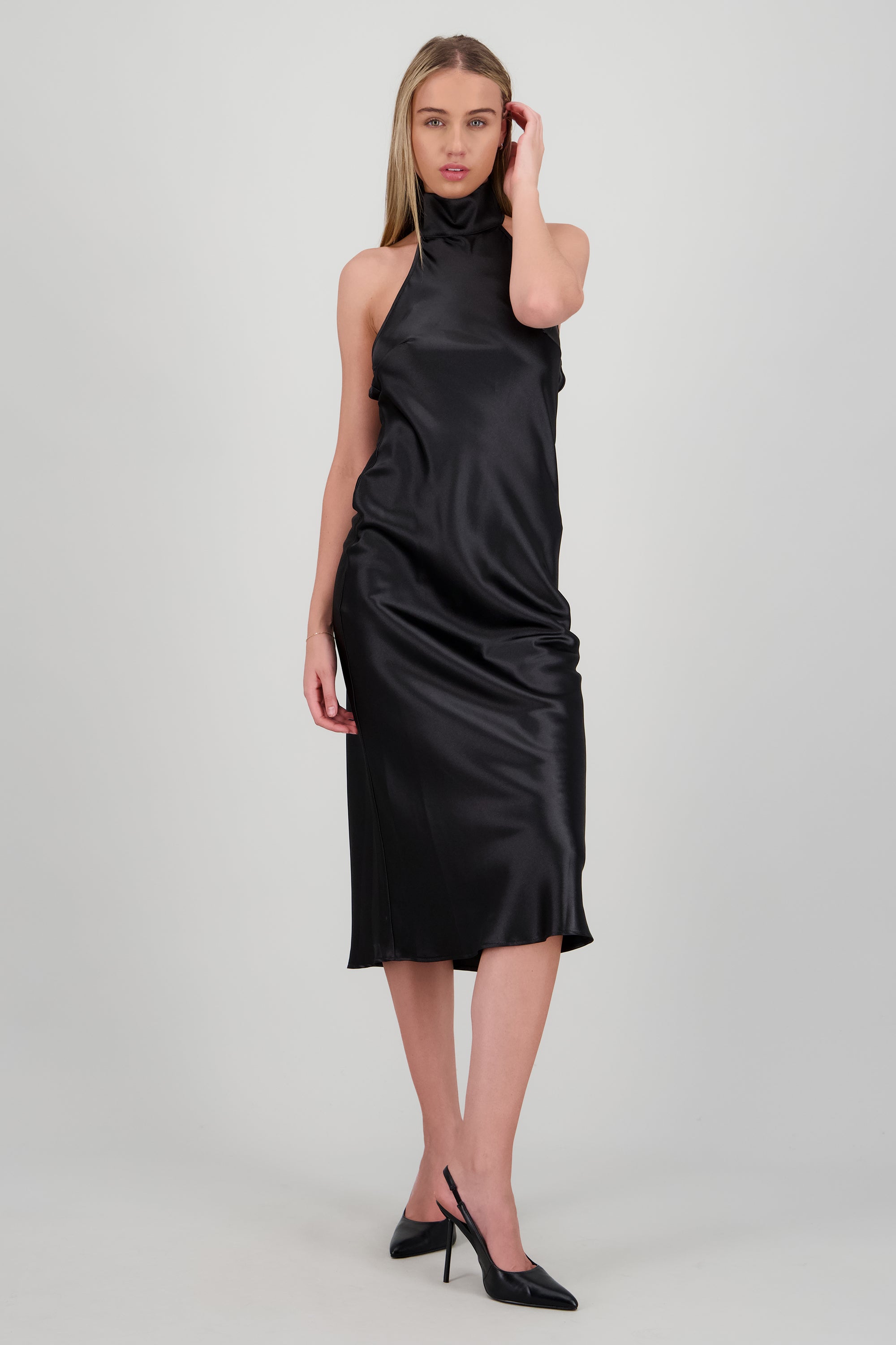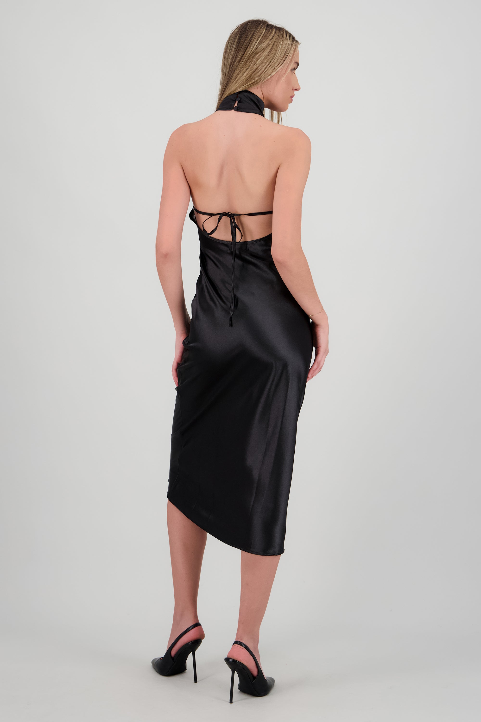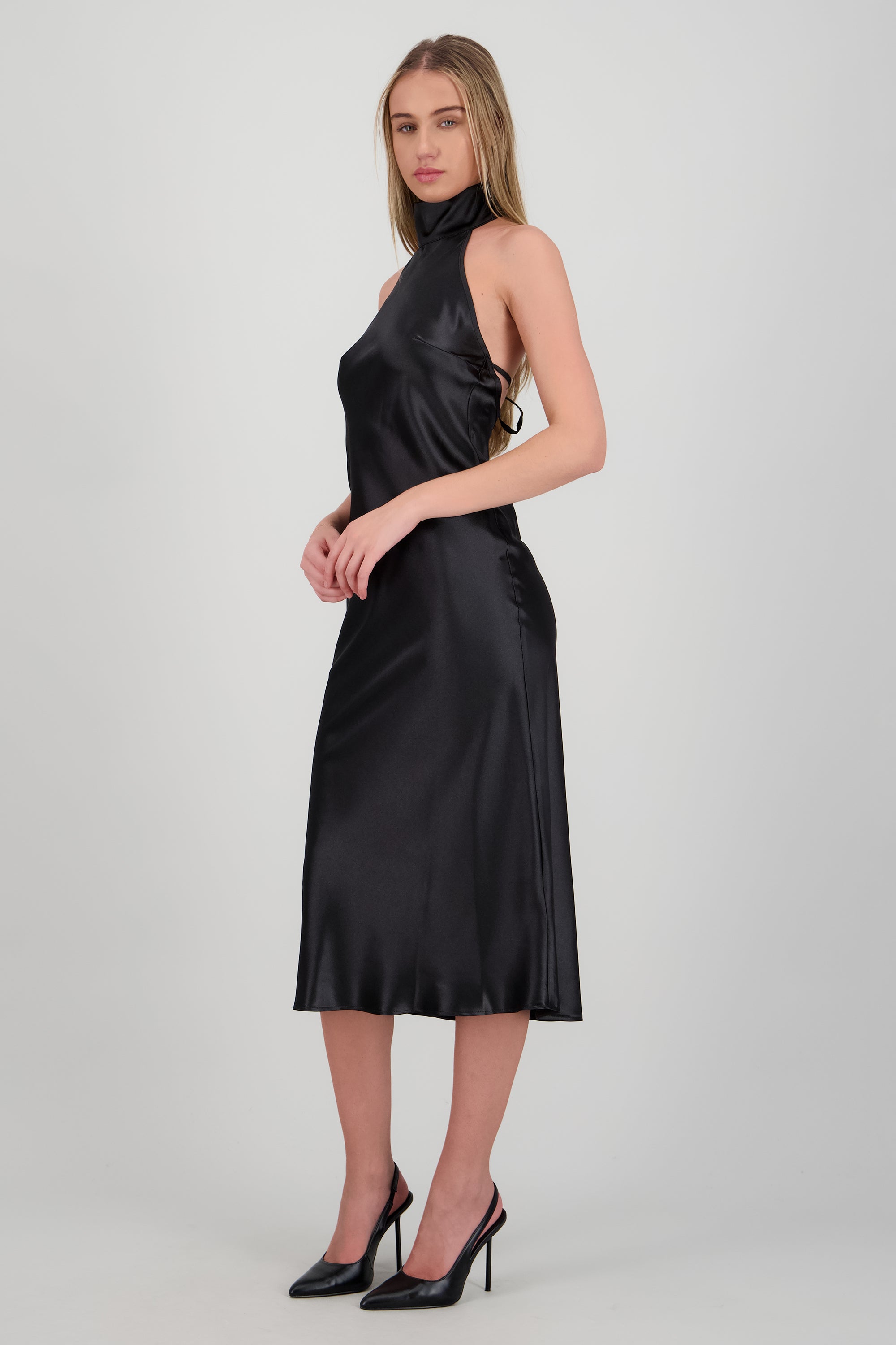 Vestido midi cuello alto con amarre en espalda