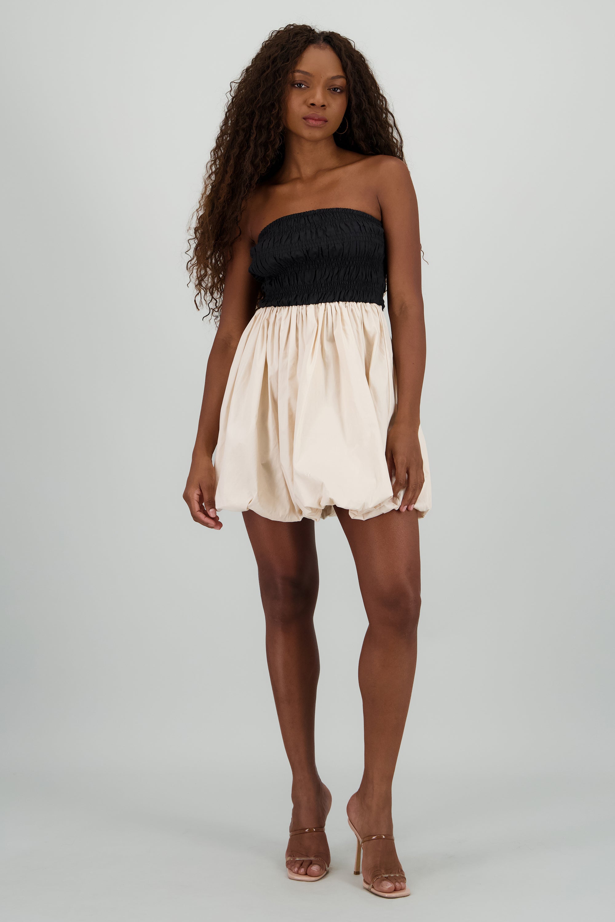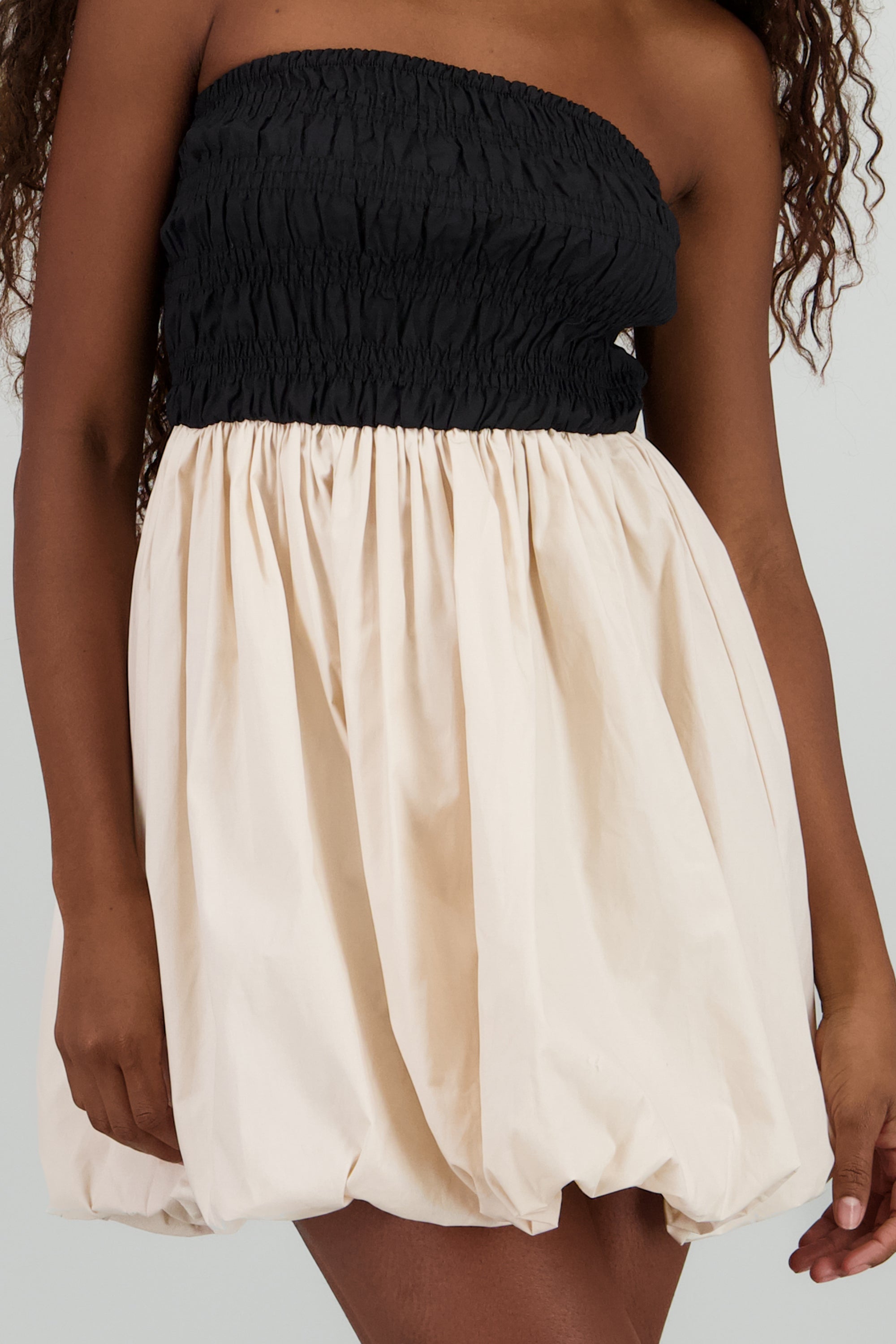 Vestido strapless buble contraste
